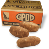 The world famous Idaho Russet Burbank potatoes are internationally renowned for their diverse uses in food dishes of all kinds. Its versatility to be fried, mashed, and baked allows for fluffier, lighter, better tasting potato than any other potato in the world. GPOD of Idaho is the only exclusive shipper of the famous Russet Burbank Potato.